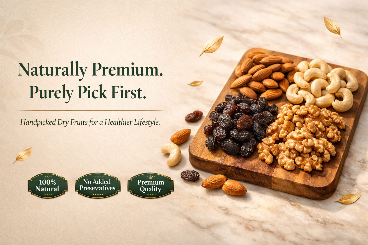 At Pick First, we believe that the simplest things in life deserve the highest care. A handful of almonds shared between family members, a bowl of cashews offered to guests, or the sweetness of raisins in your favorite dessert — these are not just dry fruits, they are moments of love, health, and connection.